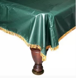 Между играми стоит использовать специальное покрывало, оно защитит бильярдный стол от пыли, влаги и загрязнений. Также периодически стоит вызывать мастера по ремонту, который осмотрит бильярдный стол и расскажет о его состоянии. Само покрывало изготовлено из нейлона с влагостойкой пропиткой, оно предназначено для стола размером в девять футов. Цвет у покрывала зеленый, по краю проходит жёлтая бахрома. Такое покрывало отлично дополнит интерьер бильярдной комнаты.