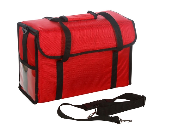 Термосумки нужны для того, чтобы доставлять еду от производителя до потребителя в идеальном состоянии. Обычно используются в бизнесе, который организовывает общественное питание, а также торговлю. Это способ, который позволит хранить и транспортировать еду. Обычно, переносится пицца, другие горячие продукты. Данная термосумка предназначена для того, чтобы транспортировать обеды. Данная модель изделия позволяет доставлять еду в идеальном состоянии, она хорошо хорошо сохраняет исходную температуру. Изделия из нескольких слоев, каждый из которых выполняет свои функции. Сверху находится материал, который защищает её от внешнего воздействия, от непогоды, атмосферных осадков, ветра. Затем идет слой утеплителя, а затем термоизолирующая часть. У термосумки есть ручки. Они могут регулироваться под рост курьера, у них есть специальная накладка, которая не позволяет мозолям оставаться на руках курьера. Размеры изделия - 450 мм х 200 мм х 300 мм. Его цвет - красный, внутри фольгированный материал.